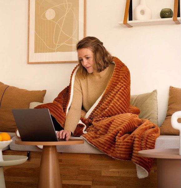Cette couverture chauffante, grand format 180 × 130 cm, combine une face en flanelle douce et une face sherpa plus enveloppante. Elle propose plusieurs niveaux de température, permettant d’ajuster la chaleur selon le moment de la journée ou la sensibilité de chacun·e. La montée en température est rapide, la diffusion homogène, et l’arrêt automatique intégré évite toute surchauffe. Un vrai cocon de chaleur à domicile.