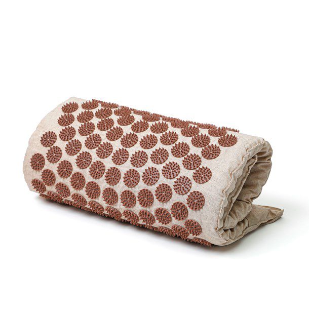 Ce tapis d’acupression, en coton et lin, est recouvert de centaines de petites pointes réparties en fleurs pour stimuler la peau et inviter au relâchement et au bien-être. Allongé·e dessus quelques minutes, on ressent une chaleur diffuse et une détente progressive des zones tendues, notamment le dos et les épaules. Un accessoire simple pour dénouer les tensions et créer un moment de pause à la maison.